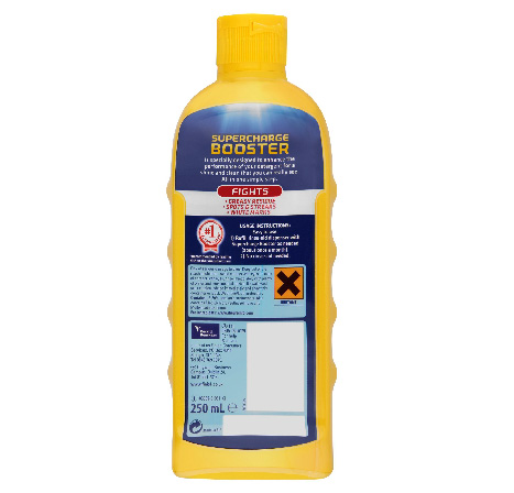 This effective detergent Booster fights those tricky marks and stains so that your detergent - and your dishwasher - is always working at its best. Supercharge Booster keeps your dishes clean and shining.